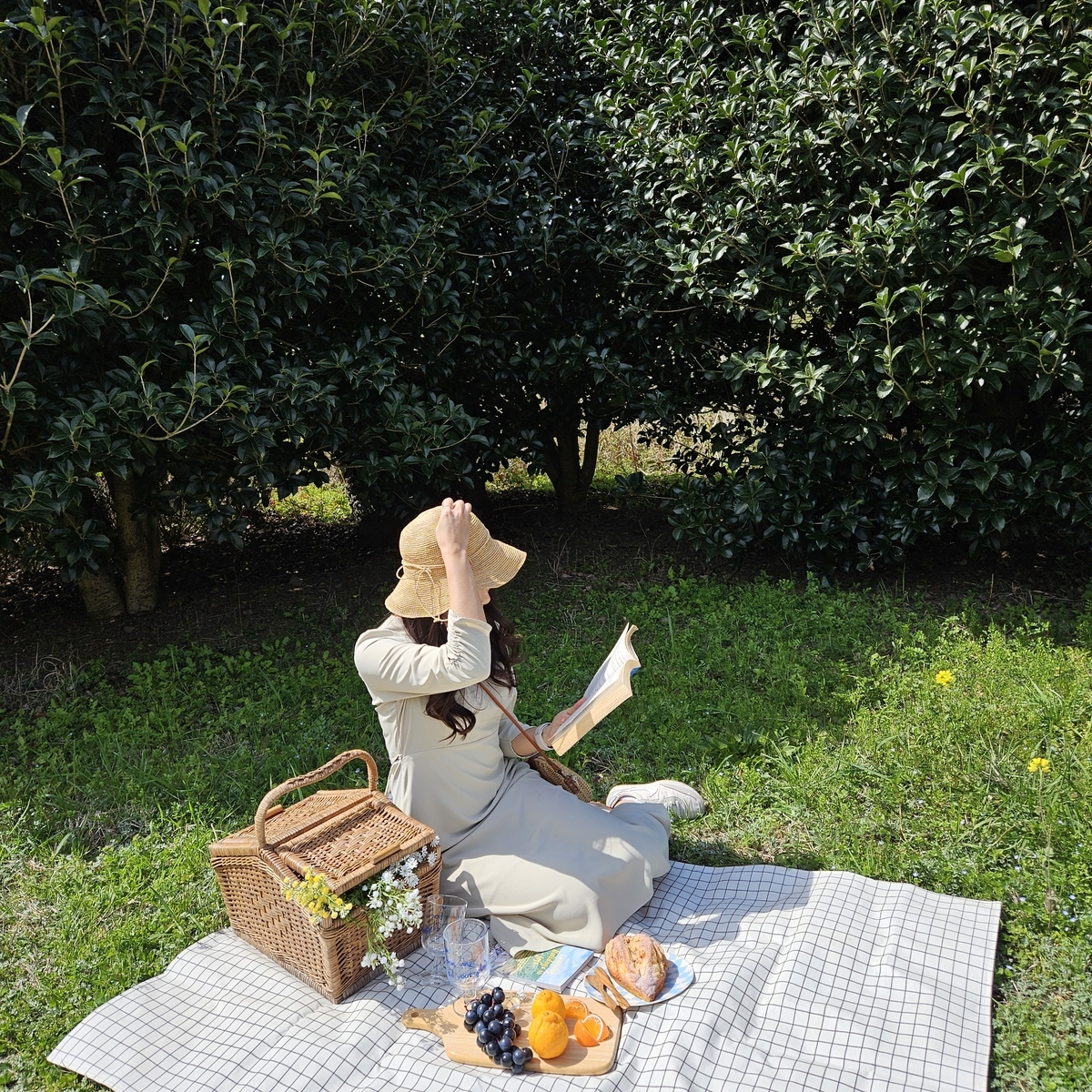 今回私たちはパン、みかん、ブドウなど簡単な物を用意してピクニックを楽しみました!一緒に行った友達の機嫌がすごく良かったのか、普段なかなか見せないお姫様のようなポーズ(!)までしてくれたので遠慮なく写真をバシンバシンと撮らせてもらいました。(笑)